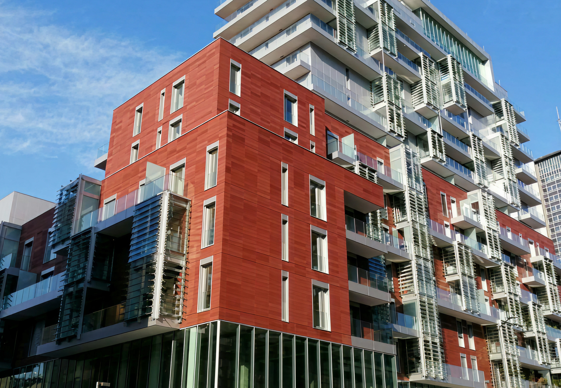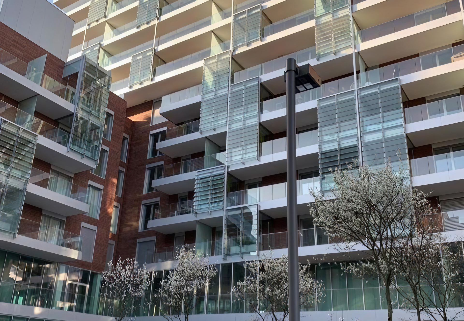 A distinctive feature of the project is the system of 110 elevated winter gardens, integrated into the private terraces and designed as usable green spaces throughout the year, equipped with openable glass enclosures and dedicated climate-control systems. The building also features a rooftop panoramic pool with bar-restaurant area, green roofs, and urban-level landscaping. The complex is rated Energy Class A+ and equipped with high-efficiency systems, including geothermal and photovoltaic plants, radiant floor heating and cooling, mechanical ventilation, and advanced home automation technologies.