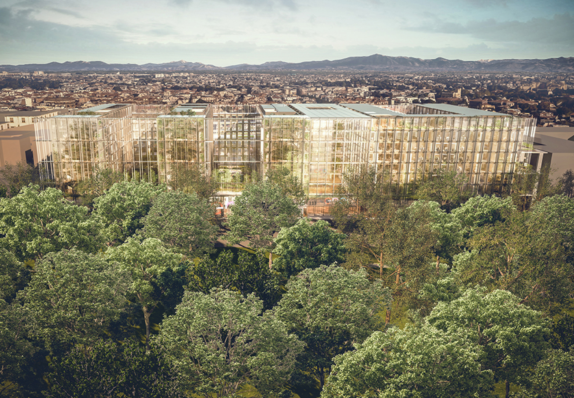The master plan envisions the transformation of the entire complex into a contemporary, high-performance workplace, achieved through a new functional organization of the interior spaces. The buildings, mainly dedicated to office and management functions, will be structured along fluid internal pathways, where the alternation of workspaces and green areas creates shared environments and integrated services designed to foster social interaction and promote physical and mental well-being. The integration between nature and architecture is conceived as a key design principle, enhancing the quality of the work experience by promoting comfort, balance, and productivity.
