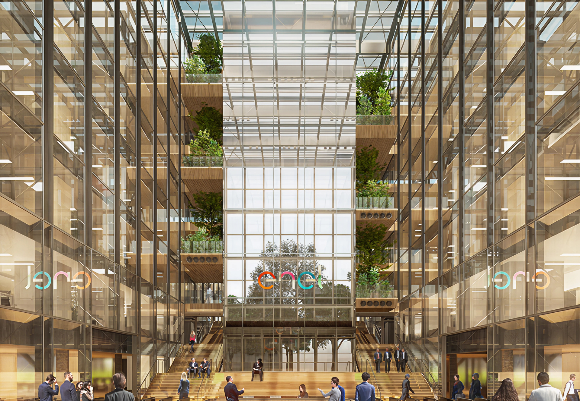 The redevelopment project, designed by ACPV ARCHITECTS Antonio Citterio Patricia Viel, concerns an ENEL-owned office complex composed of seven buildings constructed in the 1960s, still in use as the company’s headquarters.