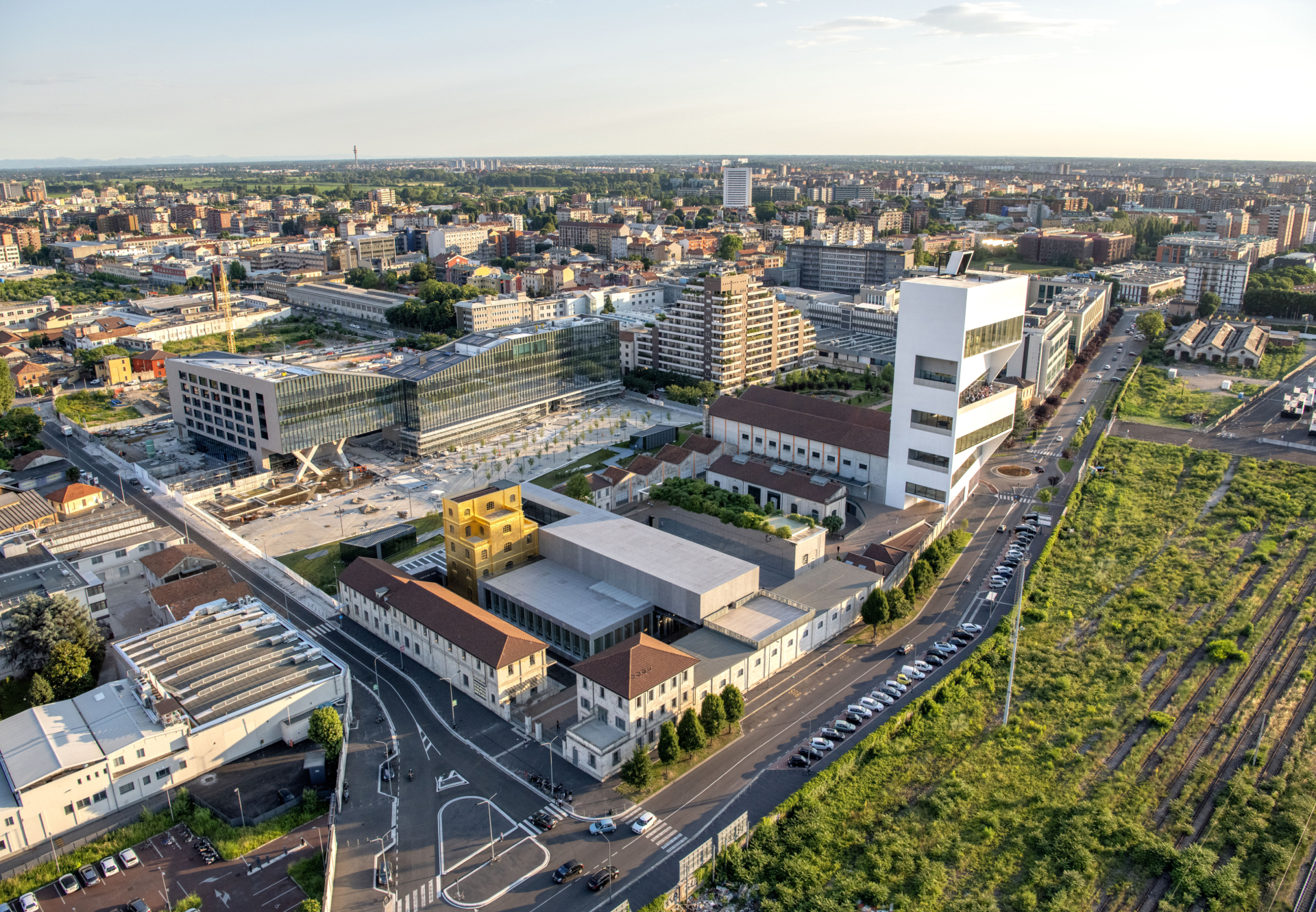The Fondazione Prada headquarters project involved the transformation of an early 20th-century industrial distillery into a 19,000 sqm cultural complex, through a sophisticated combination of restoration and new construction designed by OMA (Rem Koolhaas). The program included the structural and functional redevelopment of seven existing buildings and the construction of three new ones: the Podium, the Cinema, and the Tower.