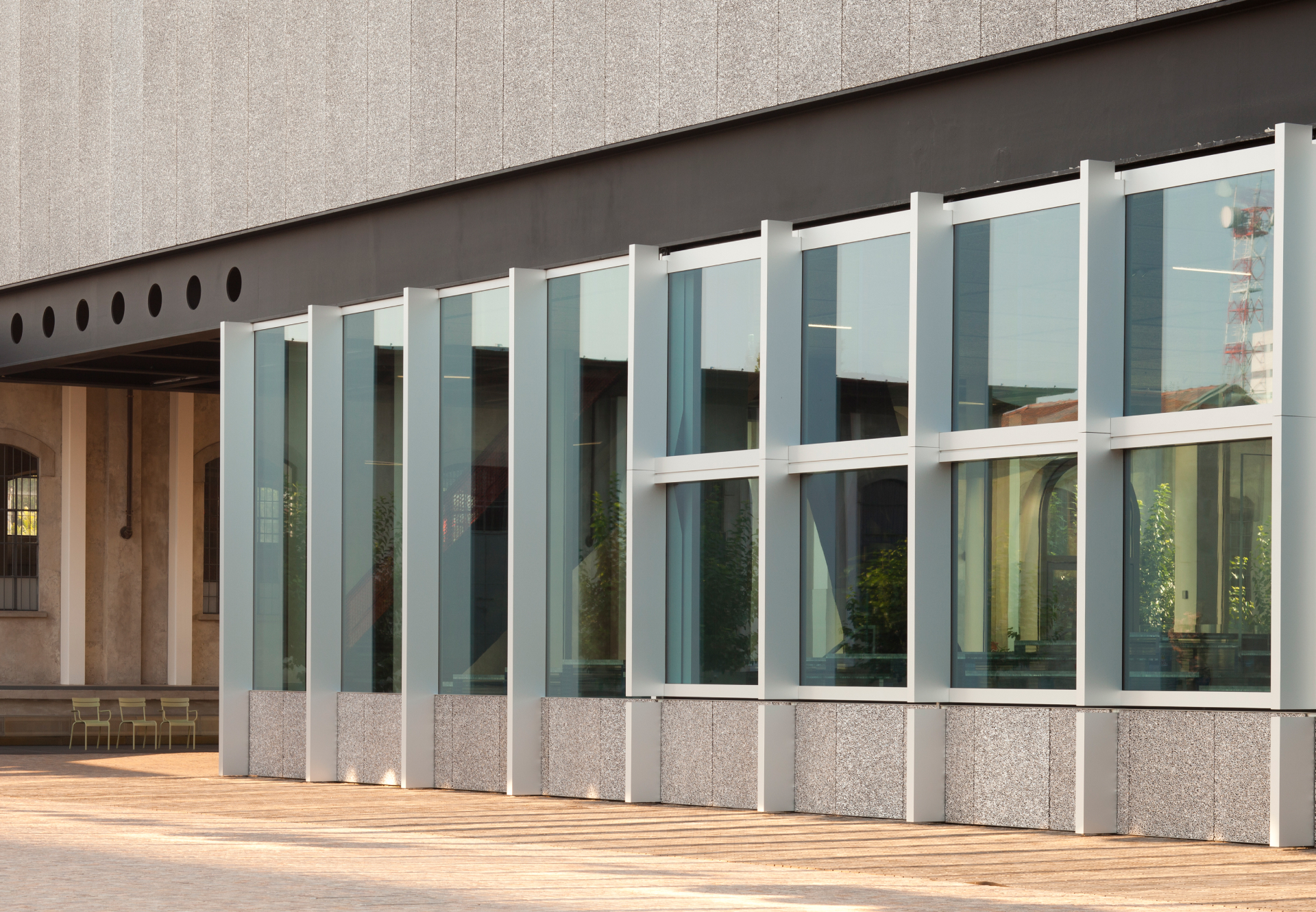 The project stands out for its technical and organizational complexity. Each building was treated according to specific performance requirements, adopting highly specialized structural, mechanical, and material solutions. The historic buildings were strengthened with steel stiffening systems applied to the existing façades, ensuring architectural compatibility and reversibility of the interventions. The new volumes employ advanced steel framing (Podium), high-performance concrete (Cinema and Tower), low-emissivity selective glass, and special claddings such as aluminum foam panels.