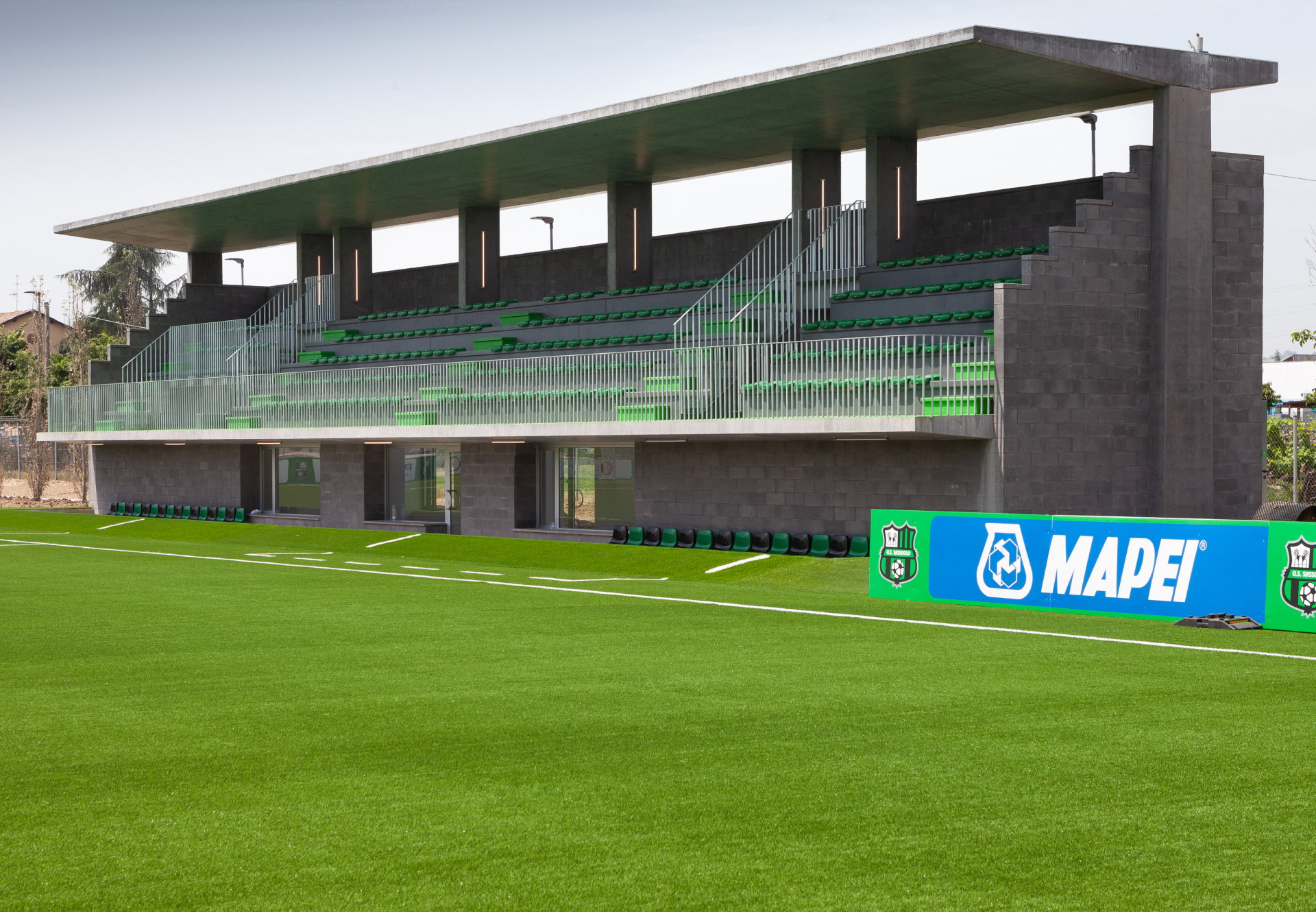 The Mapei Football Center is the new sports complex of U.S. Sassuolo Calcio, built on a 45,000 sqm municipal site in the northern area of Sassuolo. The facility includes six regulation-size football pitches and a main building that houses the club’s sports, medical, and administrative functions.