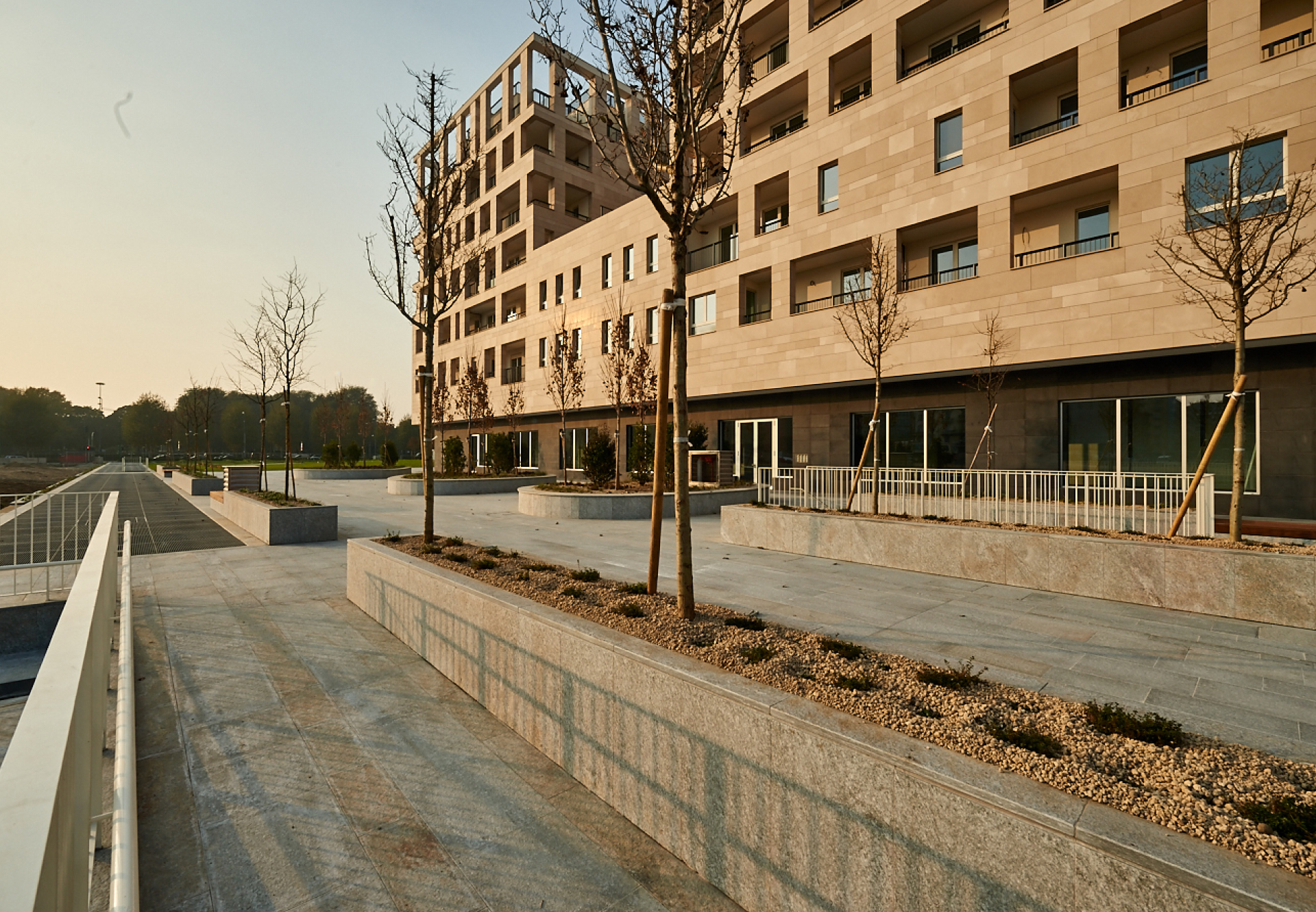 The project includes three underground parking levels, four residential buildings in Energy Class A (for a total of 170 housing units), a shopping center with retail and office spaces, a fitness center, and a hotel building. The development is completed by primary urban infrastructure works, a new pedestrian connection to the Porta Vittoria railway link, and the Parco 8 Marzo, designed as a natural extension of Largo Marinai d’Italia gardens.