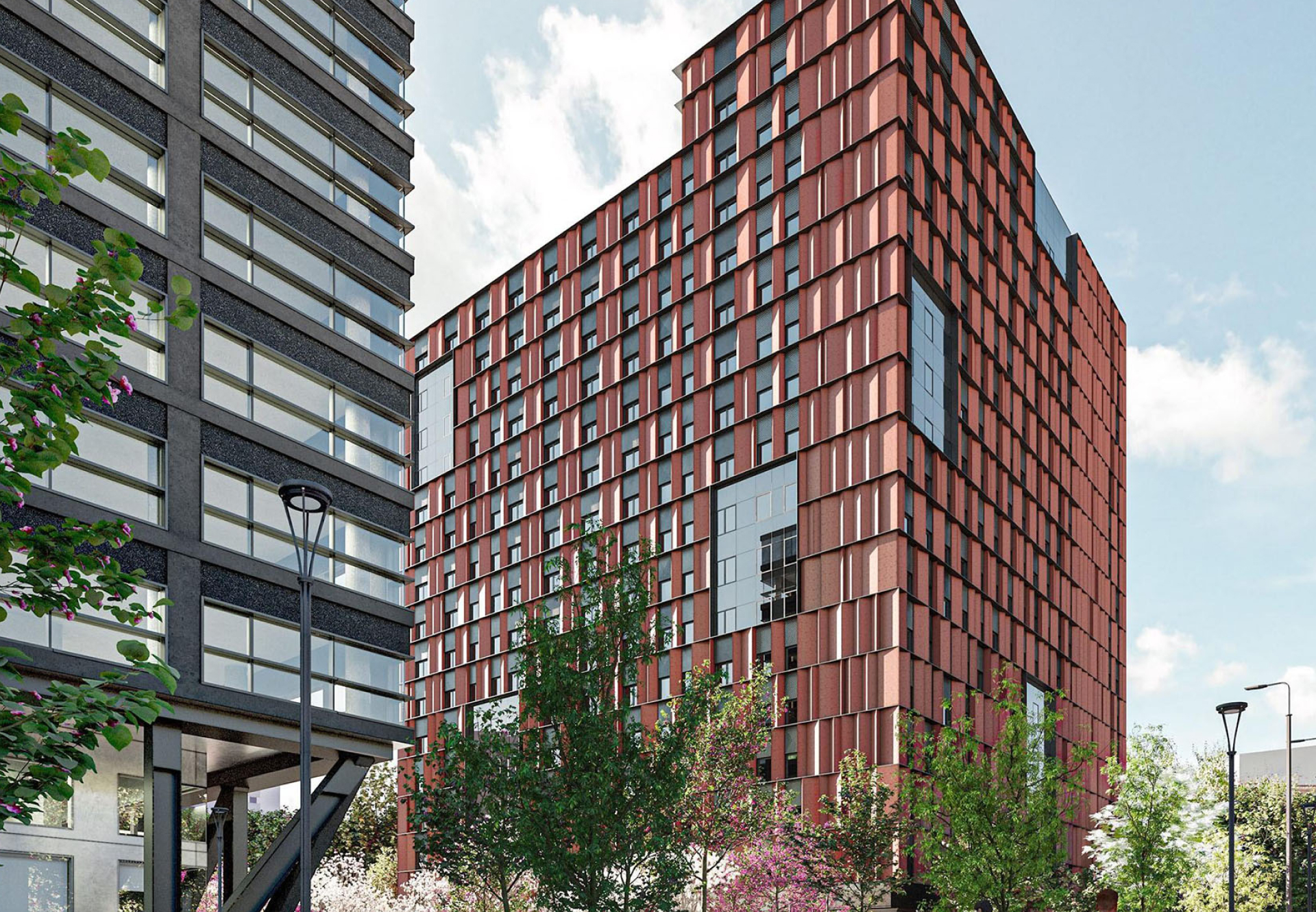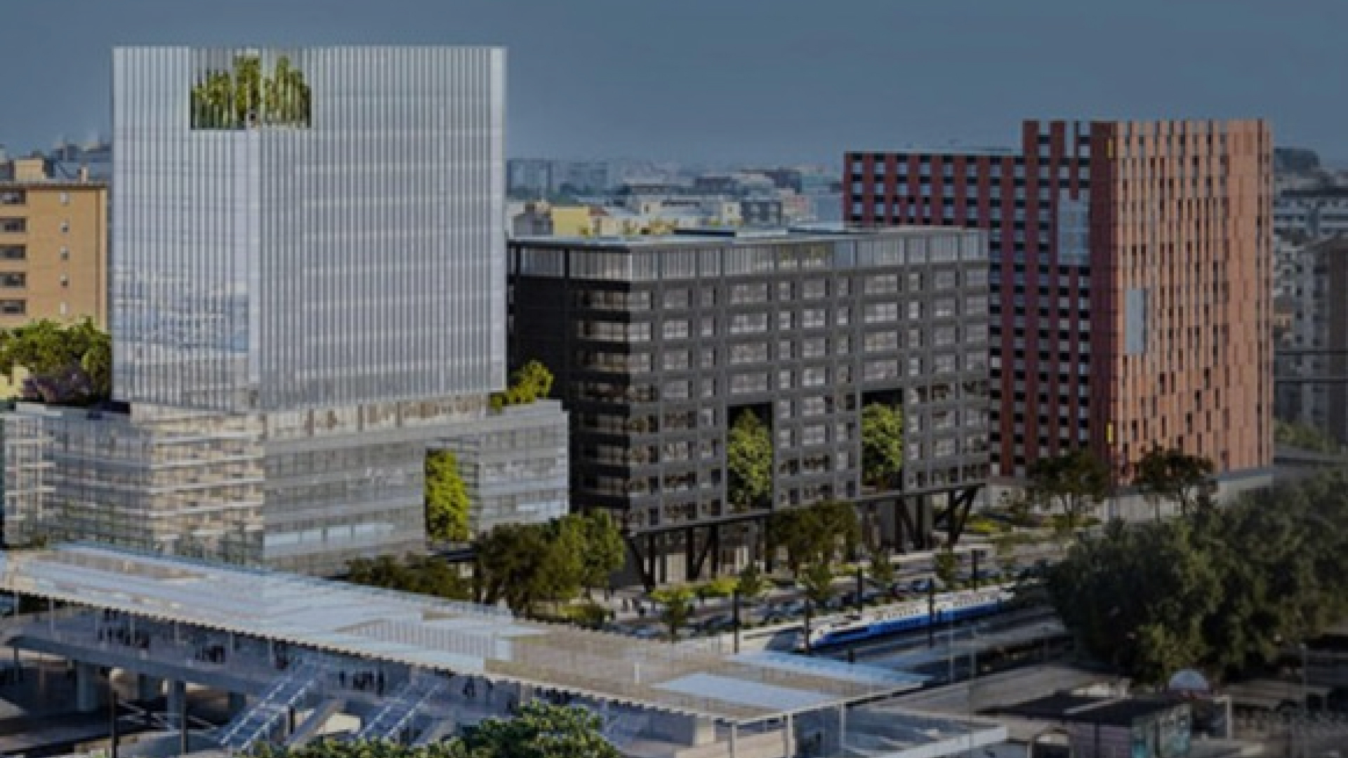 UMI1A will host a 700-bed student residence designed by Park Associati. The L-shaped building, arranged around an open courtyard, is conceived to foster social interaction and maximize solar exposure. Common areas, internal green spaces, and panoramic terraces will enhance both living quality and environmental performance. The façades alternate terracotta-toned exterior panels and iridescent aluminum inner surfaces, combining contextual references with a contemporary architectural language.