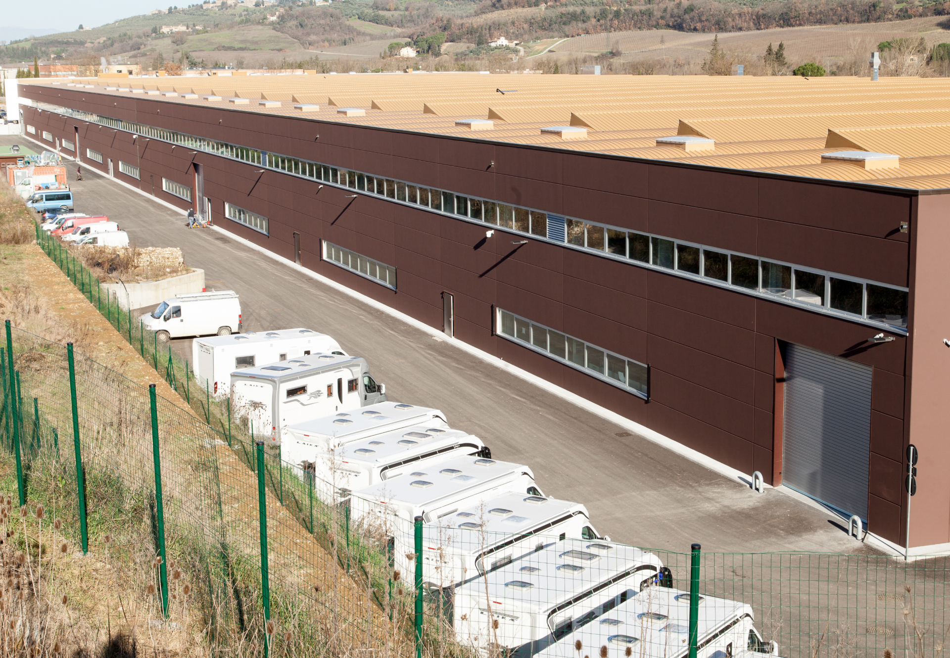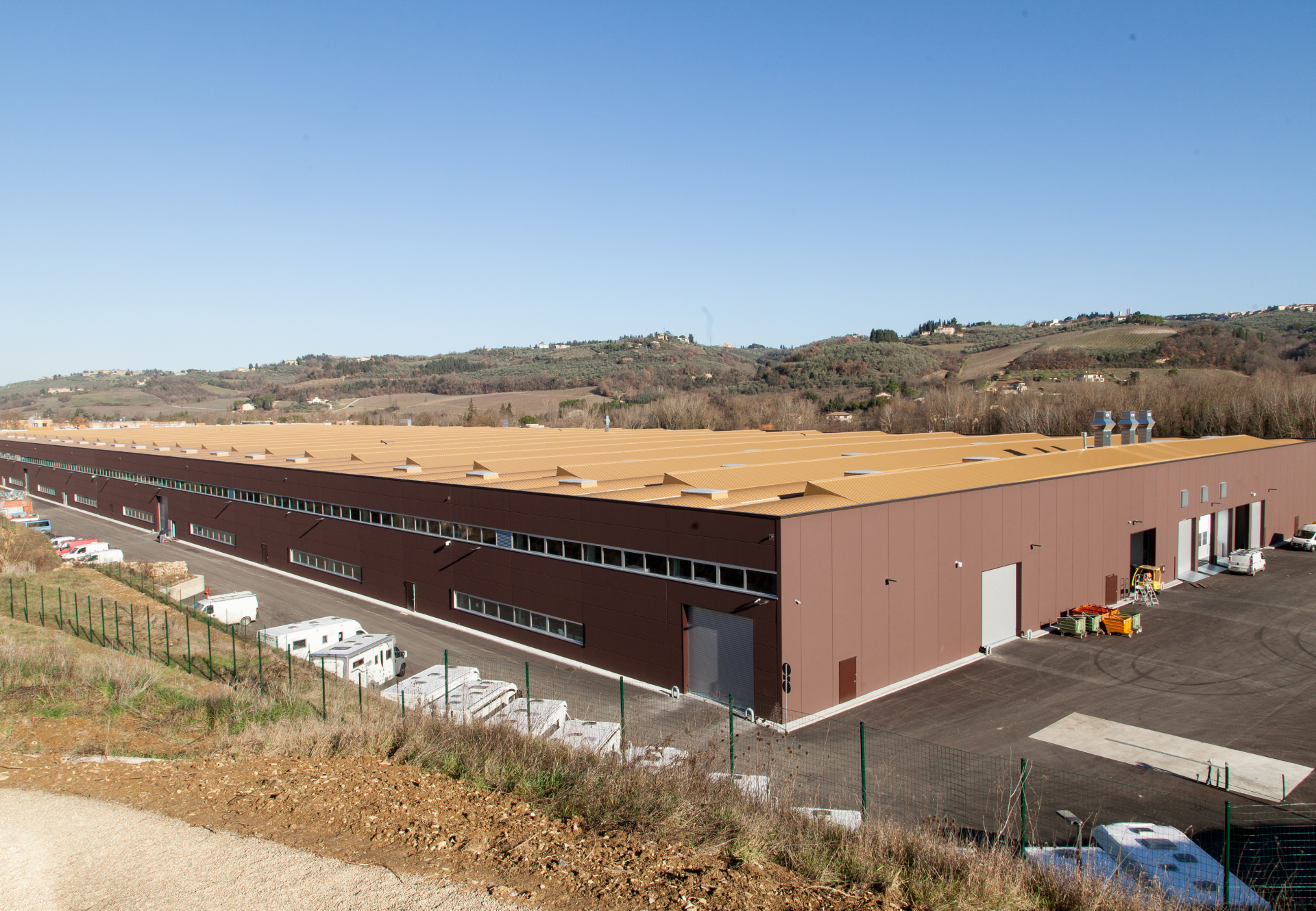 Il nuovo stabilimento Laika è stato realizzato su un’area a destinazione industriale di oltre 100.000 m², con l’obiettivo di unire efficienza produttiva, qualità architettonica e piena integrazione con il contesto paesaggistico. Il complesso si articola in due corpi principali: i reparti produttivi e il fabbricato uffici e servizi, entrambi orientati a nord, oltre alle opere esterne e infrastrutturali.